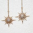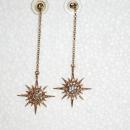 Star Burst Dangle Earrings Gold with White Crystals