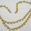 15" Sterling Art Deco Two Tier Open Back Square Cut Yellow Glass Necklace