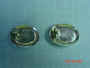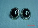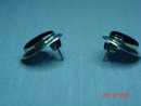 These oval sterling silver pierced earrings have black onyx set in the center. They measure .8" long and .6" wide. The backs of both earrings are stamped with a copyright symbol, SE925 and Thailand. They are in excellent condition.