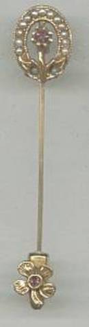 Stick Pin/Lapel Pin GT Victorian revival Style W/Faux Seed Pearls&RS