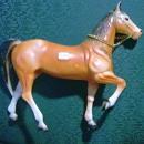 Plastic figural horse marked with an "S" superimposed over a "W", Hong Kong, #3155. Ca. 1950's. Measures 11.5"l, 10.25"h. Good condition with only a few scrapes to the finish. Sold as is. Anyone with information on the company that made it, please email me. Inglenook Antiques...Established 1989