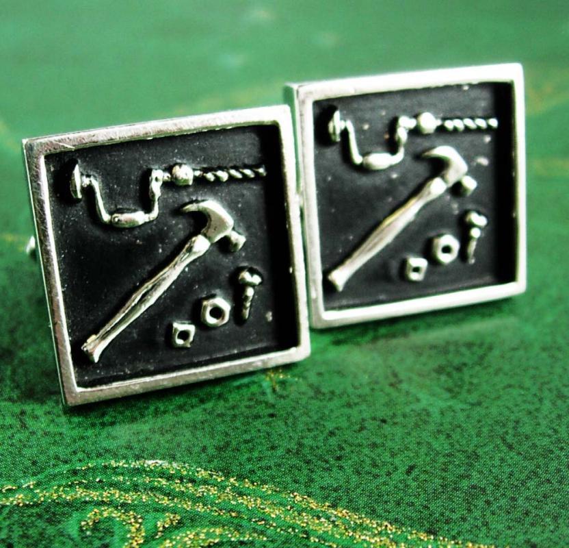 Swank DO it Yourself Cufflinks Vintage Shadow Box Tool Kit Box Industrial Cuff Links Gift for the Handyman