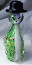 Tall Murano Sommerso Art Glass Cat Wearing Cobalt Blue Hat Sculpture Paperweight