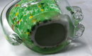 Tall Art Glass Murano Sommerso Glass Cat Wearing a Blue Hat Paperweight. The inner core is white glass with stretched speckles of green, yellow and red spots then coated over with a clear layer. The cobalt blue hat is applied. The top of the hat on the right side are two impressed lines that come together on one end to form a "V". This could be a makers mark or meant to depict a hat ornament. It is 8.25" tall. It is not signed and the label is missing. The condition is excellent.