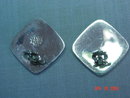 These sterling clip earrings are so shiny that they pick up every reflection, and the pictures just don't do them justice. They are square but mounted on the clips at an angle, and the edges are goldplated. One of the backs is marked LATON, TH-129, MEXICO, and 925.