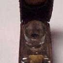 This particular piece is an amazing antique traveling inkwell that has a great black leather case. There is a small button on the front that releases the lid to reveal a large glass insert for holding the actual ink. It is very well made and is an earlier design from England. In nice condition. Tight closure and original leather on outside. We accept VISA, MASTERCARD, DISCOVER, and AMERICAN EXPRESS payment via Paypal or you can pay with a money order or check. Buyer pays S&H.