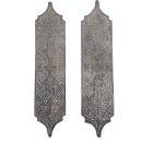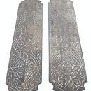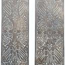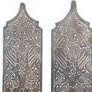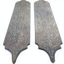 A collection of two large carved Dayak shields for the Kumang Gawai ceremony / Harvesting Festival, less than 5 years old. Each carved from lightweight wood with complex mirrored tied motifs of Buah Gumbang Bersimpan / Whirlpool Pattern, Mata Aso / Dragons Eye and Buah Berinjan / creeper vine. These are gorgeous for pub, bar, dining hall and office. Each shield comes complete with handle to grip.