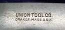 This is a quality made thickness gauge marked "UNION TOOL CO. ORANGE MASS.". It is 3.0" long overall closed, in good+ condition with no rust, some minor staining, good tight joint, has a threaded screw that can be tightened or removed to remove the precision ground thickness gages for individual use. The gages range from .0015-.025 inches. Specific sizes are .0015", .002, .0025, .003, .004, .005, .006, .008, .009, .010, .012, .013, .014, .016, .017, .018, .019, .020, .021, .022, .023", .024, & .025". A nice clean handy machinist or mechanics tool!