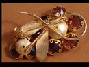 I dont think I have ever seen settings like this in any of the jewelry I have been thru. The large purple rhinestones are encased in bezels that have prongs on either side in the form of little loops. The whole brooch is large ( 2 ½" x 1 ½" ) and is really thick so it stands up off the shirt or dress. Unsigned and in great shape.