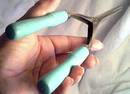 This is a very old curling iron. It was never used. I had two of these, but have sold the pink handled one. There is only a fragment of the original tag left on this one. They each had a sticky tag from "McConnel", which I beleive was a department store. It is stamped Made in USA. It measures approx. 9 1/2'X3". The shipping fee quoted is for priority/uninsured in USA only.