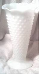 A very nice, tall milkglass vase with a "hob-nail like" design. There are "dots & dashes" in the design. It is in very good condition, no chips or cracks. It is approx. 9 1/4" tall by 5" across the top ruffles edge and approx. 4 1/4" across the foot. The fee quoted for shipping is for priority/Insured in USA only.