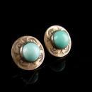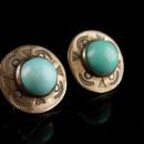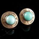 These elegant and petite sterling and turquoise earrings are detailed with silver native american etchings around the stone. Pretty enough for a night out on the town or a T shirt and jeans. Have not been polished.
