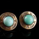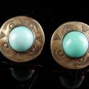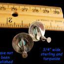 Victorian antique sterling Earrings - native american turquoise screw back - Indian ladies silver jewelry - estate fine jewelry