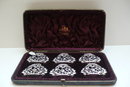 Beautiful Sterling silver Boxed set of Victorian Menu Holders in excellent condition. each one measures 2 1/4" x 1 1/2" high. It is difficult to find sets and this one is particularly special