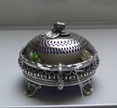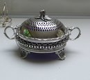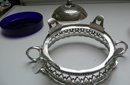 Victorian Silver Plate Round Butter Dish/blue liner