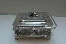 Beautiful Victorian silver plate and glass sardine box in excellent condition. It measures 5 1/2" x 4 1/2" x 5 1/2" high.