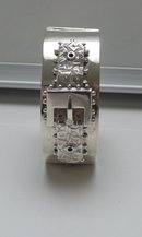 Sterling Silver Victorian Buckle Bangle in very good condition. It measures 1" wide and the inner diameter is 2 1/4" x 2". It is an unusual buckle design; it has wow but at the same time it has simple elegance
