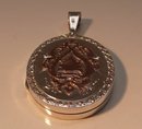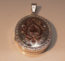 Beautiful Victorian Sterling silver locket with rose gold overlay in very good condition. It measures 2 1/2" long including the bale and it is 1 1/4" wide. Wonderful dynamic piece - very pretty.