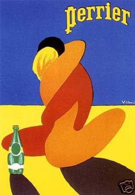 *Original Authentic poster by Bernard Villemot for Perrier known as "Embrace" or "L'Entreinte". Poster in excellent condition mounted on linen museum quality work "A".