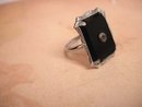 Vintage 1920s Art Deco Onyx and Paste large setting ring