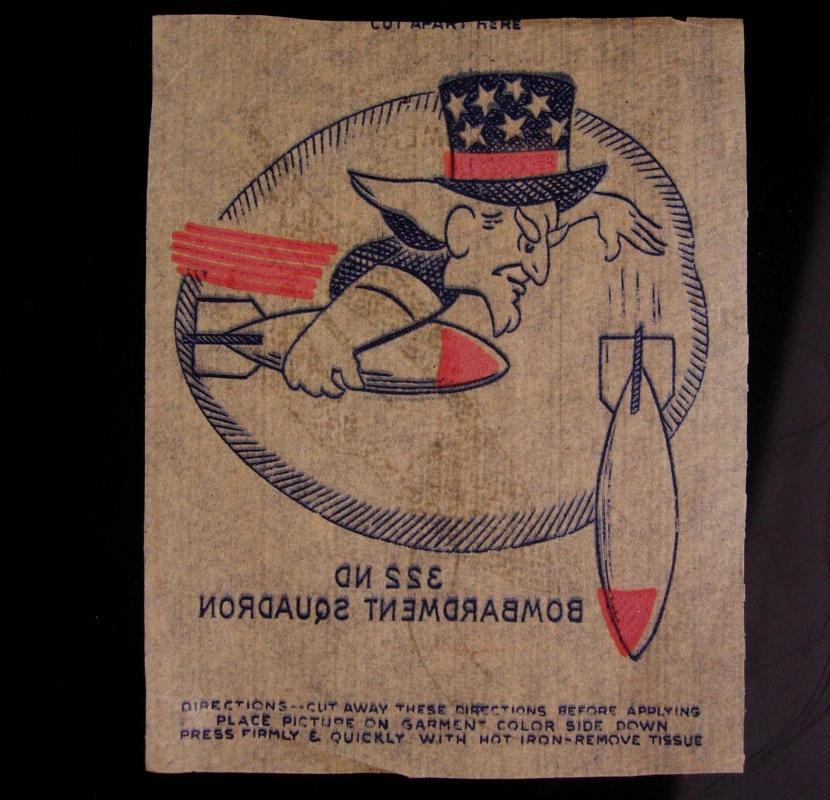 Vintage 322nd Bombardment Squadron Walt Designed Iron On Combat Insignia 2 3/4 x 3 inches