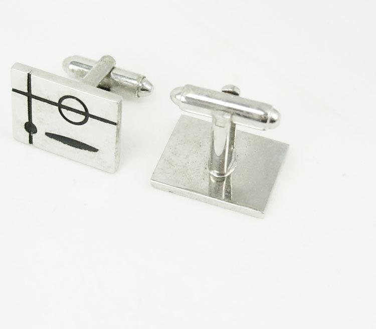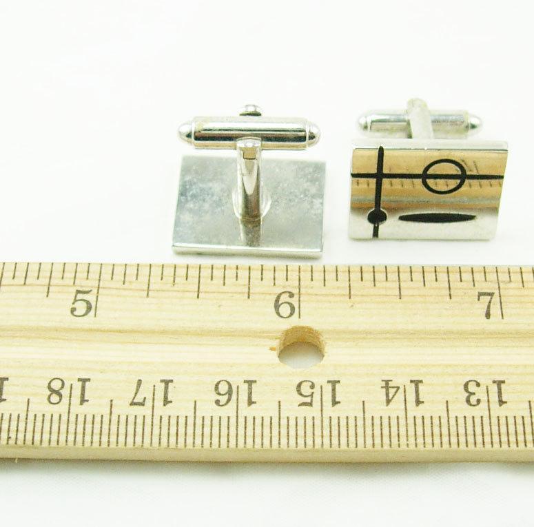 Vintage Abstract Cuff links black Enamel Cufflinks Square Silvertone Retro Modernist Birthday Business Mens cool gift geek hipster jewellery