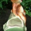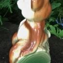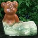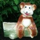 American Bisque Company figural planter from the bear series of the 1940's. This one has a whimsical brown "Bear on Log", which is green. Measures 6"l x 5.75"h. No chips or cracks, just allover crazing of the glaze. Inglenook Antiques...Established 1989.