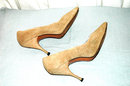 Vintage Beige Pierced Suede Pointy High Heals Pumps