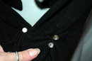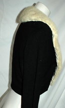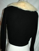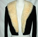 Vintage Black Cashmere Sweater with White Mink Collar. It is a size 10 to 12. Very stylish short waist sweater that is lined. The mink collar snaps on or off. Plus it is not as yellow as it appears in the pictures. The sweater closure is a small hook and eye. It has glass rhinestone button adorning the cuffs . condition is excellent. Here are some basic measurements: