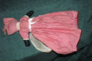 She is old and missing one felt pupil in one eye. Her clothes are only a teeny bit soiled.