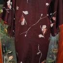 Vintage Japanese Kimono Silk Brown with Flowers