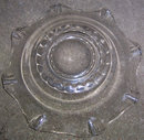 Vintage Clear Glass Center Bowl with Ruffled Edge. Bowl is 9 1/2" across and 3" high. Very good condition.