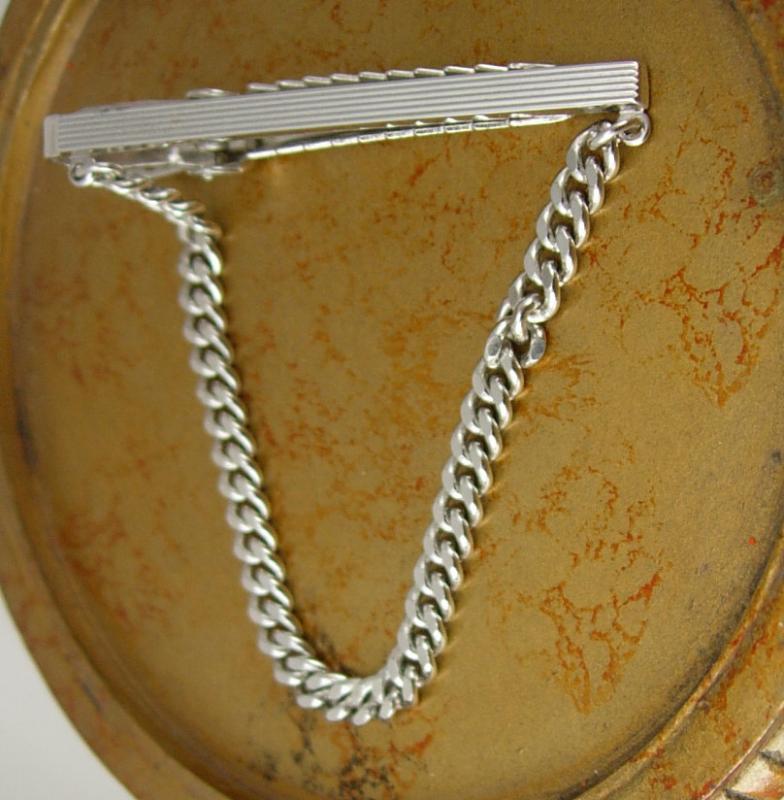 Vintage Cuban Link Swag Tie Clip Silver Holidays Birthday Business. This is a very handsome cuban link swag design tie clip. It is silver color and very sharp looking. This tie clip is in good vintage condition, well made and light weight. Great for a present for the holidays, birthday or wedding. dec21 2013