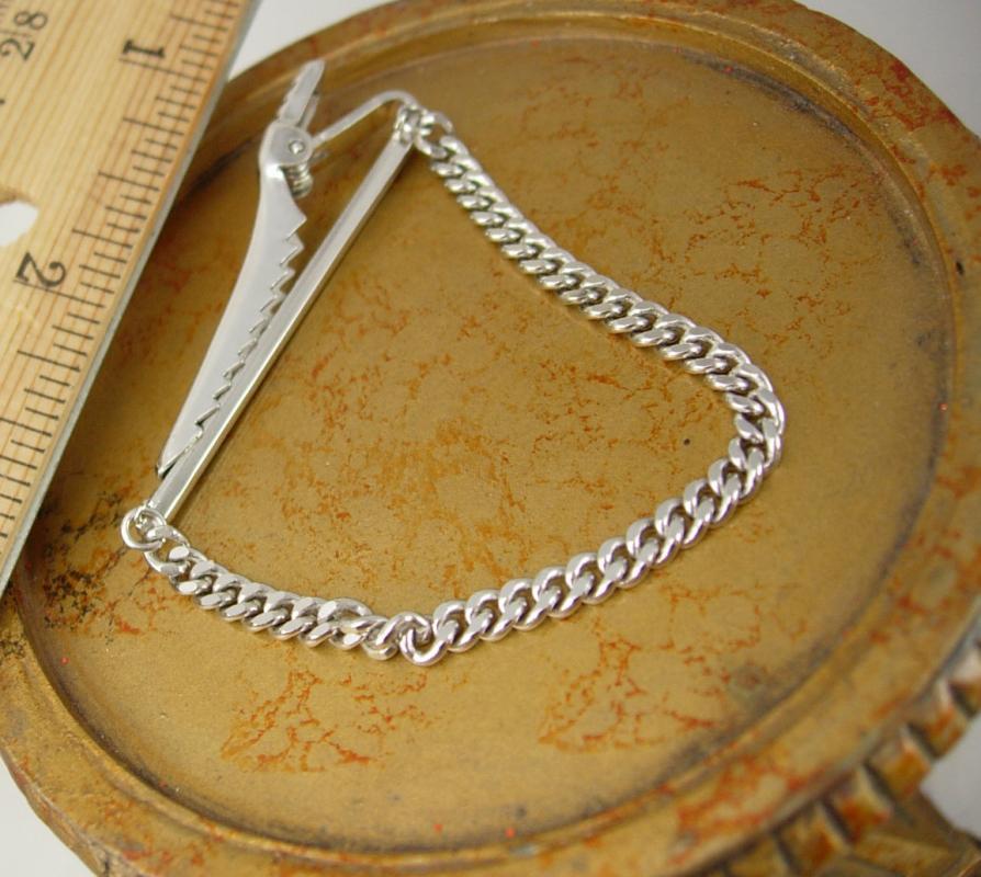 Vintage Cuban Link Swag Tie Clip Silver Holidays Birthday Business Tie bar