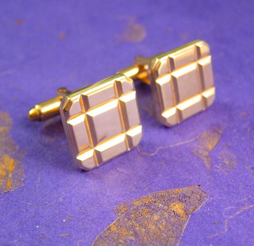 Vintage cuff links 14kt gold overlay Quilt Cufflinks Classic Men's Designer Kreisler Cuff link Jewelry