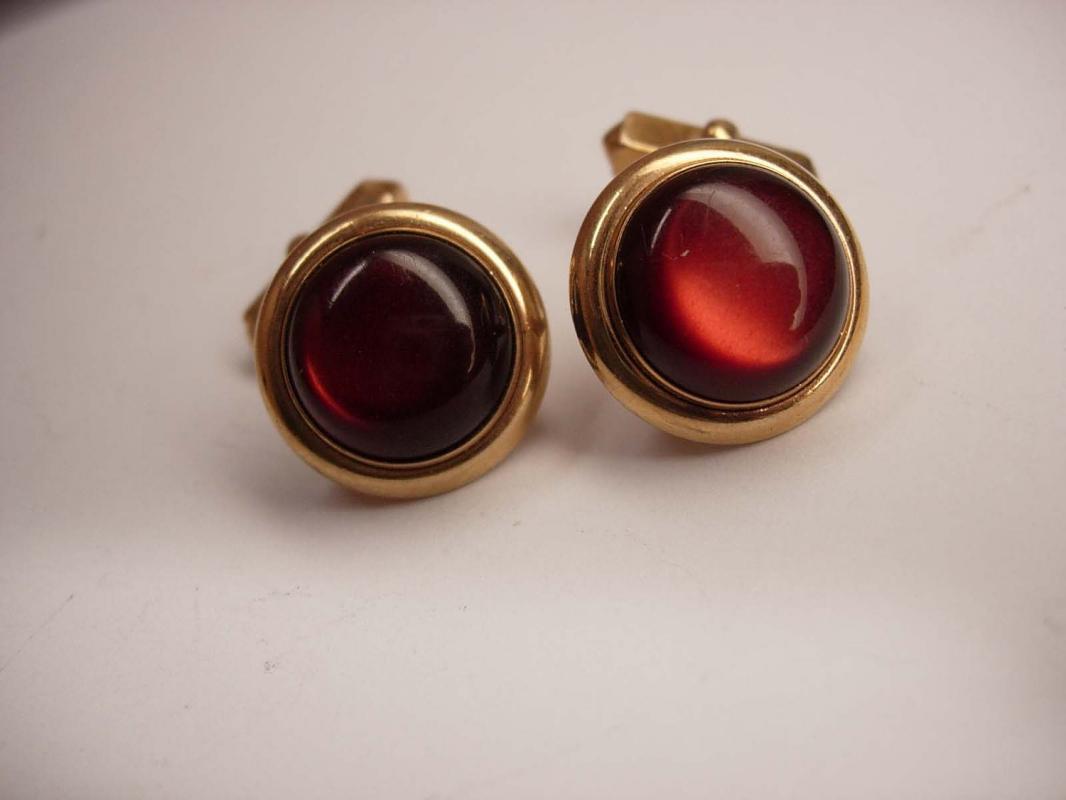 Vintage cuff links Vintage Round Red Moonglow Cufflinks Fancy designer Signed Swank