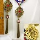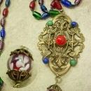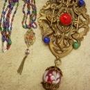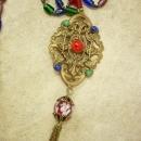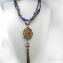THis gorgeous 3 strand necklace holds an antique czech brass and glass pendant with blown glass beaded tassel. The pendant measures 6 1/2" long. The three stand necklace measures 30" long. All the beads are glass. The colors in this are just gorgeous!. . VintageSparkles offers Layaway on all our pieces regardless of which site it comes from.All layaway payments will need to be in the form of a check or money order only. Please remember that vintage & antique items are not mint, nor are they perfect but they sure are full of old history and charm. Please use photos to make your decisions and read our policies prior to buying so you can have an excellent experience with us. Please use this number when ordering gaa445074. If you want to see more of these pretties this is the link to my etsy store. http://www.vintagesparkles.etsy.com/ or visit our gallery on pinterest where you can see all our pieces at once http://pinterest.com/etsyvsparkles/sparkles-in-my-etsy-store/