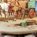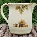 English pitcher with scene of a horse-drawn coach on the Dover Road. Made by T. Lawrence as part of their "Falcon Ware" line, 1936-64. Shape is known as "Cuban No. 1". Measures 5.5"h. Nice condition with no chips or cracks, but does have crazing of the glaze. Sold as is. Inglenook Antiques...Established 1989.