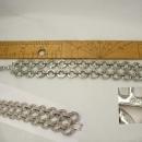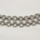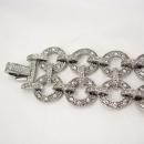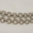 Sparkling with over a hundred rhinestones , these circles of brilliance have rhinestone links that makes this one spectacular bracelet. It is wide ( 1 1/8") and is 7 1/2" long when closed. It is a high quality heavy and well made bracelet that is in great condition. You won't be disappointed.
