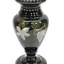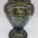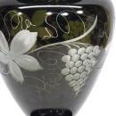 Nice large Bohemian cut to clean crystal vase by Egermann that retains its original label. The vase measures 10 inches tall. It has very dark olive glass (which appears much darker than the pictures under lighting show) cut with a grape cluster and vine design to clear. Excellent condition with no chips or cracks or significant surface wear. There is a bit of light residue from use inside the vase on the bottom. Vase still has its original Egermann Czech Republic gold foil label on the shoulder.