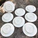 Fine china coupe bread & butter plate set of 8 in the "Bridal Rose" pattern #5522, made by Epiag of Czechoslovakia. Circa 1930's. Measure 6.5"d. Metallic gold rim. No chips or cracks with very little surface wear, except for some gold loss, as shown. Sold as is. See our other listings in this pattern! Inglenook Antiques...Established 1989.