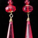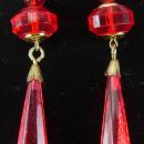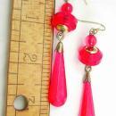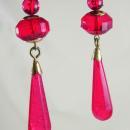 These vintage earrings are made with so many multifacets that you cant see them all in the photos. The color is a fiery pinkish red and they are really long ( 3 ¾"). The long drops have large faceted rondells on the top which are also made of lucite. Lightweight and fu to wear! These are in very good condition too.