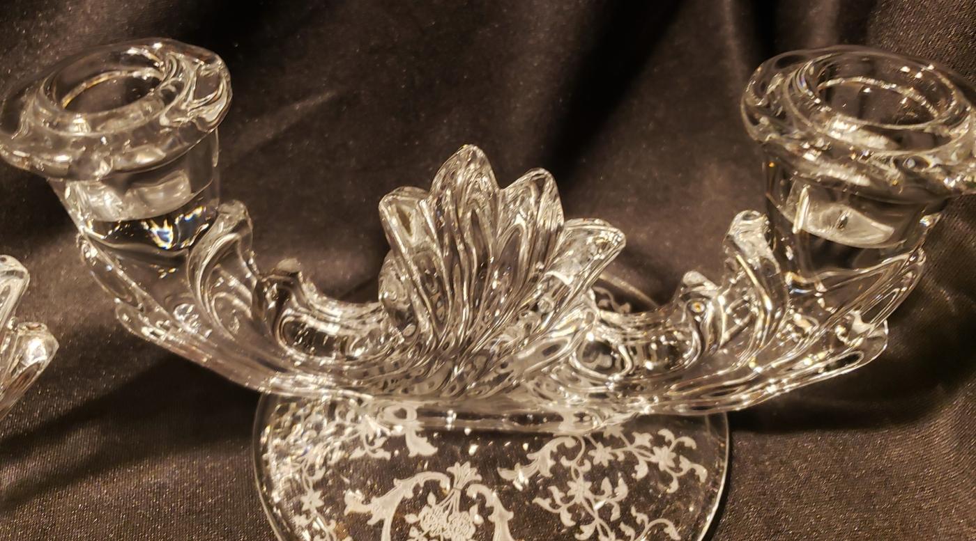 Vintage Fostoria Navarre #2496 Candlestick Pair 2-Lite