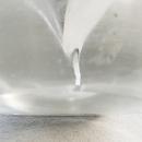 Clear blown glass stopper for a decanter, made in a ball shape with gold bands at widest point. Measures 4 1/4"h overall, 2 5/8" overall diameter, with a 1 3/4"d base that tapers to 1 5/8"d. Nice condition with no chips or cracks, just a few scratches to the gold bands as shown. Inglenook Antiques...Established 1989.