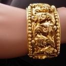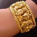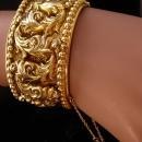 Vintage golden baroque extra wide Bangle Bracelet - Vintage Art nouveau relief Hinged 6 1/2" Women's Wrist Jewelry