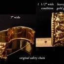 This baroque bracelet is very wide and gorgeous and although unsigned you can tell it is a quality costume piece. The length is 6 1/2 inches long on the inside when closed. See photos for more views, size and condition. beautiful condition.