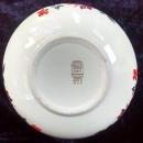 Hall China salad bowl in the "Red Poppy" pattern of the 1930s. Measures 9"d x 3"h. Marked in gold on bottom. Platinum trim shows wear, but no chips or cracks. Sold as is. Inglenook Antiques...Established 1989.
