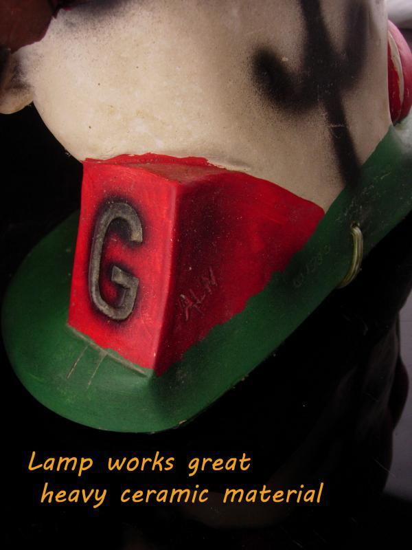 This rare and HUGE Georgia bulldog Lamp is in great working condition. He is really big ( see all the photos for measurements) and even has a bandaid on his face from the fierce fight he put up being on the team. Hope he gets a great home.. VERY rare piece. Heavy too so it will have to shipped carefully thus the higher postage.