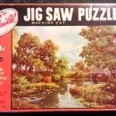 Pair of vintage cardboard jigsaw puzzles with their boxes. Pair includes Whitman/Guild "Quiet Water" Series #129, 304 pcs.; and "Shelter Bay" Series #114, 304 pcs. Both puzzles are complete with no missing pieces. Finished size approximately 14" x 18". Date from the 1950s-60s. Each box shows wear and tape marks. More photos of the boxes available. Sold as is. Fun for all ages! Inglenook Antiques...Established 1989.
