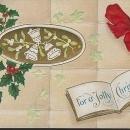 Vintage For a Jolly Christmas Postcard with Red Bow Bells and Holly 1913
